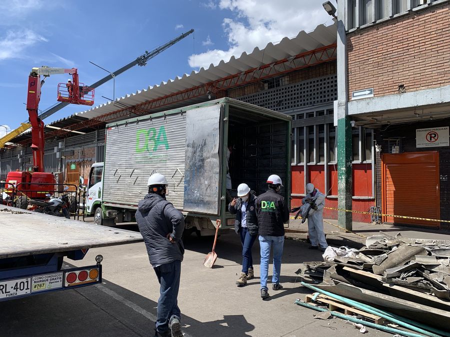Con un gran despliegue logístico, técnico y humano, D3A SAS – Distribuidores Ambientales SAS, en alianza con otras empresas, realiza la intervención para el desmonte, gestión, transporte y disposición final en celda de seguridad de cerca de 200 toneladas de residuos con asbesto en Corabastos.